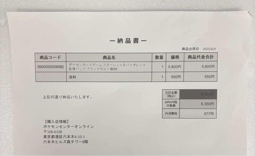 2025.10.27 5:53頃のお届け予定です。